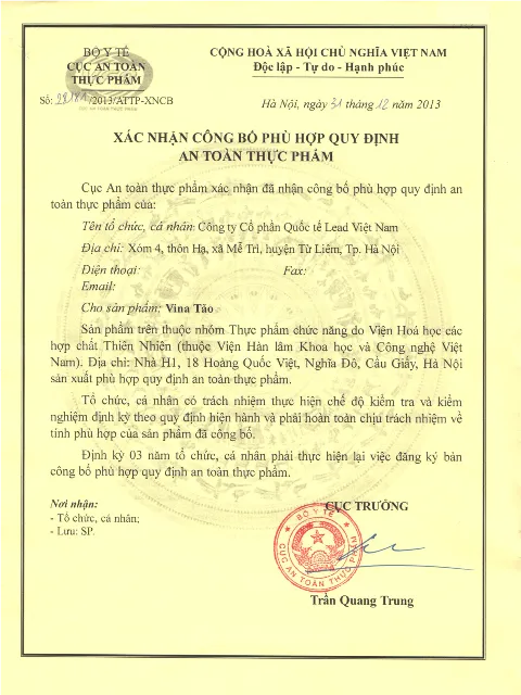 Số XNCB: 28181/2013/ATTP-XNCB