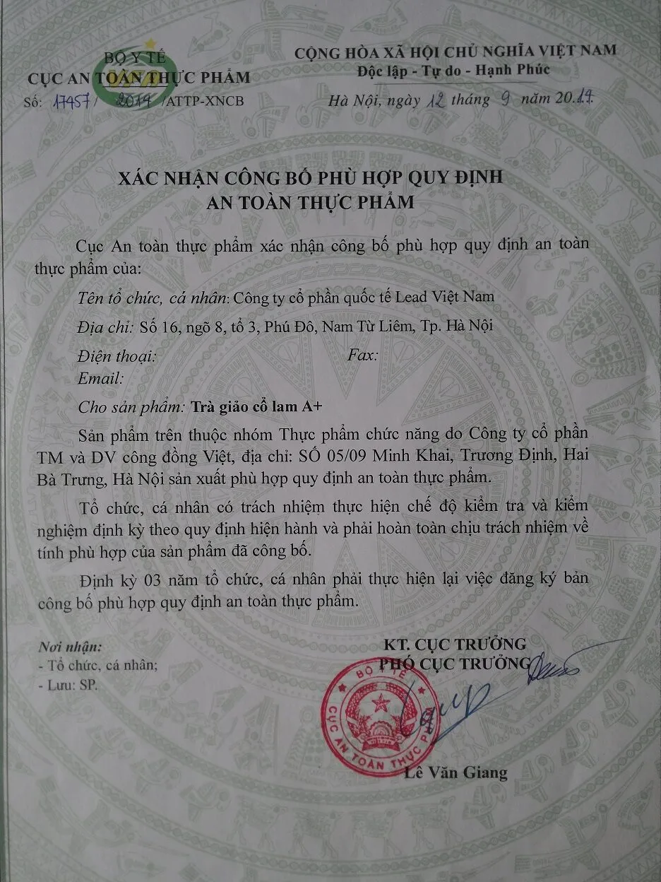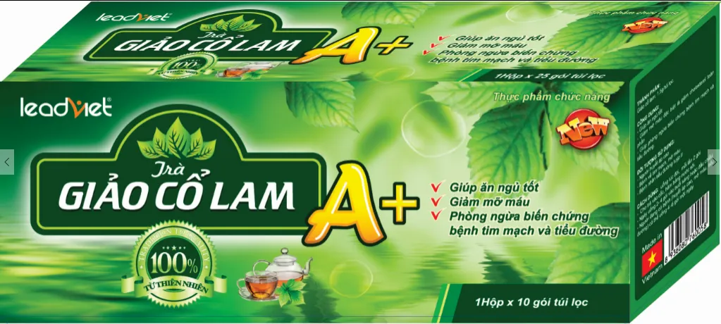 Nhãn hiệu trà Giảo cổ lam A+ là một sản phẩm của LeadViet. Trà Giảo cổ lam A+ được chiết xuất từ loại giảo cổ lam 5 lá.